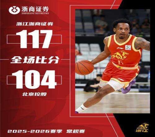 4月19日,CBA常规赛第41轮,浙江浙商证券主场迎战北京控股。双方在常规时间处于胶着态势,未能决出胜负进入到加时赛,凭借布朗的火热手感,帮助浙江浙商证券占据场上优势,并取得胜利。最终,浙江浙商证券117-104战胜北京控股,取得两连胜。