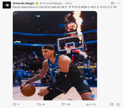 这是一场拉锯战,开场魔术就打出15-5,但很快活塞迎头赶上,班凯罗与坎宁安的状元对话也非常精彩,首节班凯罗5中3+三分1中1+罚球2中2拿到9分3篮板,上半场打完班凯罗9中5+三分2中2拿到17分6篮板2助攻,他的总体发挥是比CC更出色的。