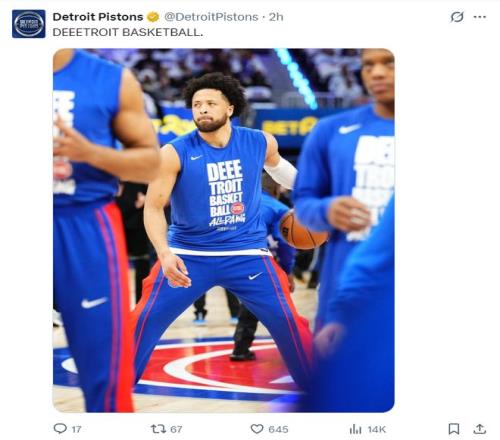 这场比赛之前NBA官方公布了本赛季的MVP候选人名单:亚历山大、约基奇、文班亚马。有活塞球迷为CC抱不平:很奇怪没有坎宁安,因为活塞如果没有坎宁安的话什么也不是。