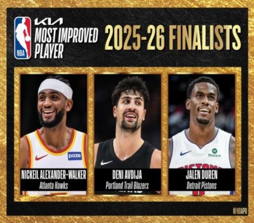 NBA官方最快进步球员球员球员候选名单:亚历山大-沃克、阿夫迪亚、杜伦