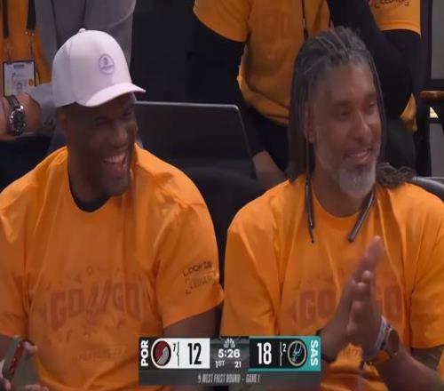 巧合的是,当场比赛,邓肯也坐在场边观战。文班超越纪录之时,转播镜头也给到了邓肯,后者只是笑着点头回应。