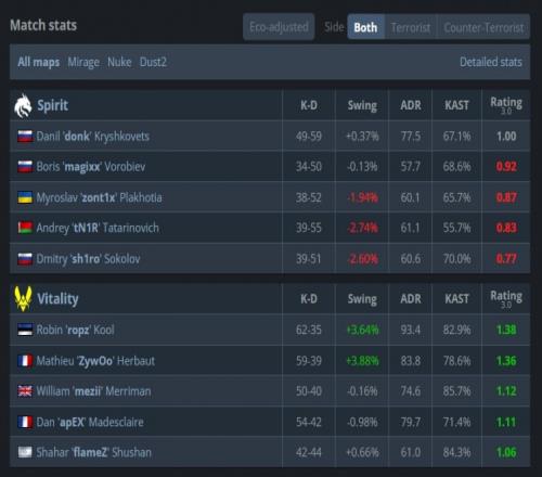 Vitality:mezii、apEX、ropz、flameZ、ZywOo