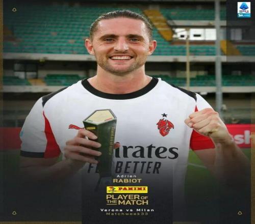 在本轮意甲,米兰1-0小胜维罗纳。本场比赛拉比奥打进全场唯一进球,赛后他也当选意甲官方评选出的本场比赛最佳球员。