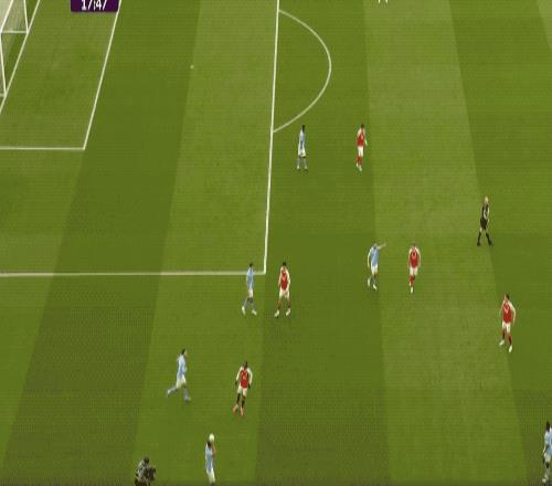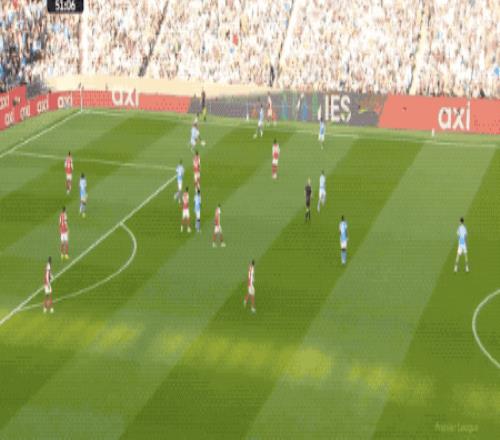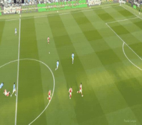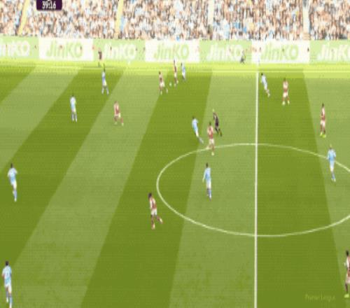 第66分钟,曼城打出快速进攻,奥莱利传球,罗德里一脚踢空,哈兰德抢在加布里埃尔之前,将球打进。