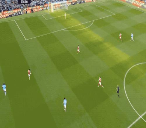 第72分钟,加布里埃尔的头球砸在奥莱利的腰上,皮球击中立柱。