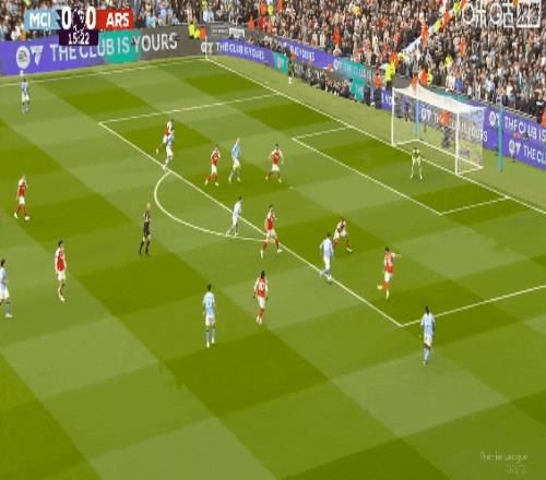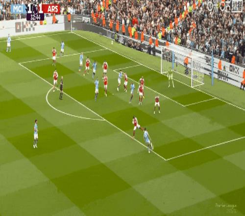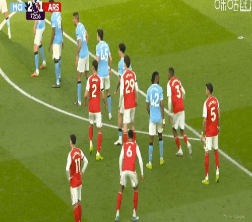 超级失误!比赛第18分钟,多纳鲁马出球拖沓,哈弗茨将球挡进球门扳平比分!阿森纳1比1曼城。
