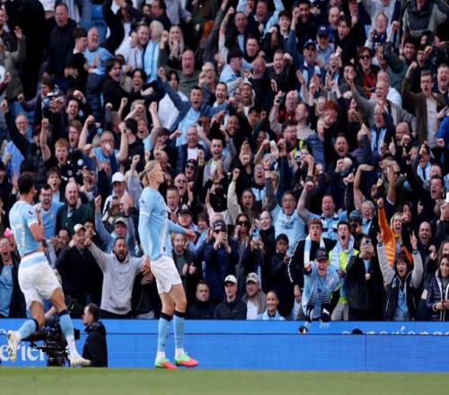 在周日晚进行的英超第33轮曼城主场对阵阿森纳的比赛中,哈兰德在第65分钟打进一球,帮助曼城再度取得领先。