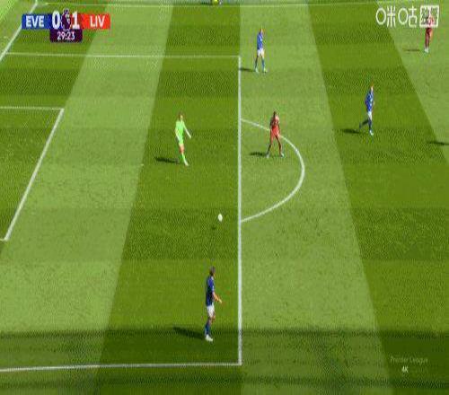 第29分钟,埃弗顿后场传倒失误,左路哈克波得球后果断斜线塞球给右肋插上的萨拉赫,后者低射破门,0比1。此球也是萨拉赫在英超的默西塞德比中打进的第9球,追平了前辈杰拉德创造的纪录。